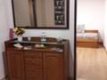 RÉS DO CHÃO: Sala com pequeno bar e arrumos.